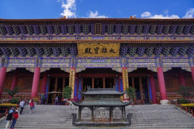 整个景区还是挺大的,检票进入以后,首先看到的就是三塔,可以直接步行先去游览三塔,也可以乘坐景交车上到最高处的大雄宝殿,从上而下游览。