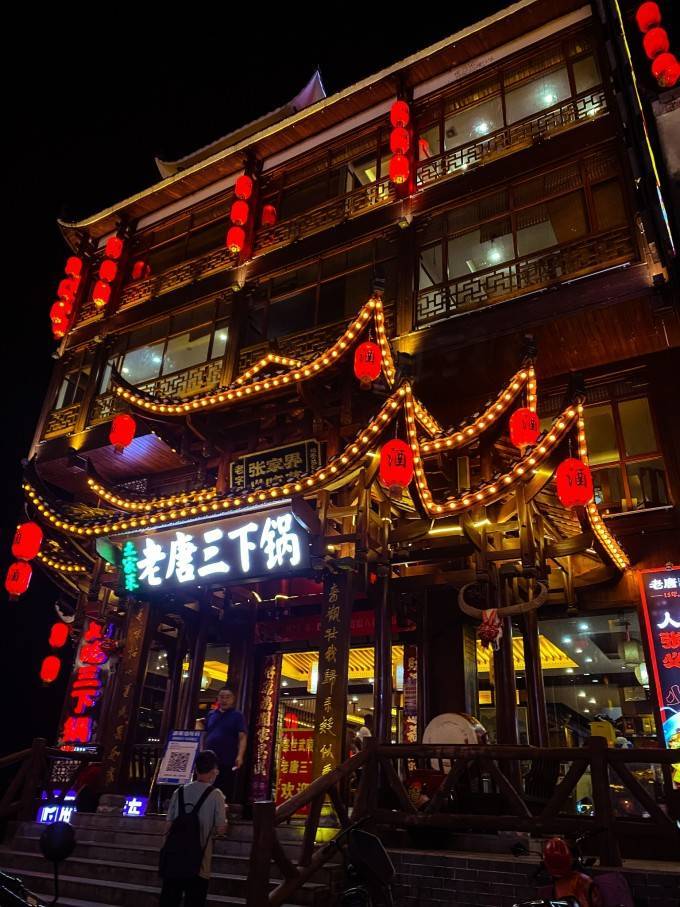 餐厅距离魅力湘西不远,很大的门帘,古色古香的角楼建筑。主打菜品三下锅,里面有土家族的互动表演。特别推荐他家的冰米酒很好喝。