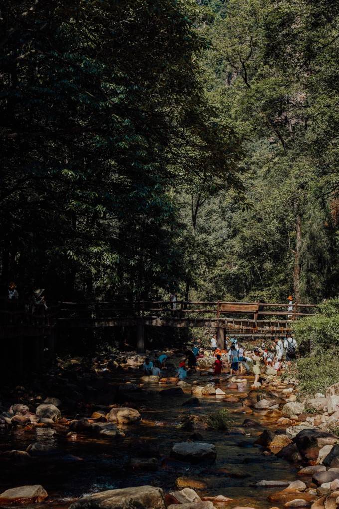 金鞭溪一般游览时间在2个半到3个小时左右,因途径"张家界十大绝景"之一-神鹰护鞭的金鞭岩而得名。金鞭溪沿线是武陵源风景最美的地界,穿行在峰峦幽谷间,溪水明净,跌宕多姿,小鱼游弋其中。溪畔花草鲜美,鸟鸣莺啼,人沿清溪行,胜似画中游。被誉为"世界上最美丽的峡谷之一"