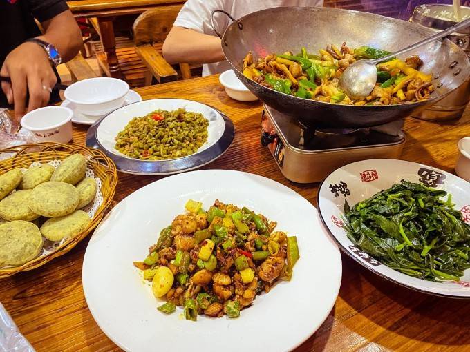 这家店位于武陵源电信局斜对面,是一家开了很多年的老店,菜品是湘西的特色,味道很不错。这个餐厅是一家连锁美食店,在市区和桑植都有店。菜品不贵,价格实惠,且素菜免费,性价比很高。
