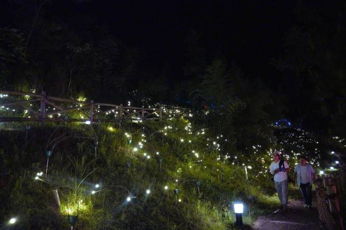 夜幕降临, “森林奇幻夜”,黑色的夜晚幻光森林的加入,让十九峰变得奇幻无比。穿越一条长长的时光隧道,推开魔法之门,进入狐巴巴魔法森林,会说话的石头、跳舞的蝴蝶、说话的树,与你捉迷藏的小动物。在这里沉浸式体验森林中的魔法世界。