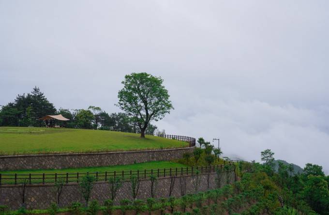 天姥山胜境瑰丽婀娜,秀丽的景点多不胜数,新建网红大草坪,露营帐篷观云海,喝一杯咖啡,带上可口的零食,在群山环绕,风景瑰丽的天姥山,寻觅一份幽静。细雨蒙蒙,搅不散灵动的云雾,置身其中恍如仙境。