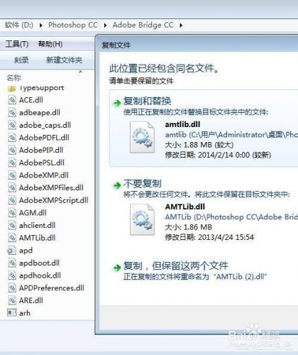 粘贴复制的Photoshop安装目录下面的amtlib.dll文件,选择复制和替换