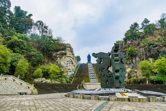 进入景区,首先来到广场,映入眼帘的是一座巨型孔子雕像,周边是历史悠 久的石牌坊。站在广场,可以俯视古宇湖景区,雕像后面便是孔子文化主题公园, 这是以儒家文化为主题,融入隆昌本地文化元素的公园,突出打造了景观主轴线 上孔子讲学,二十四孝雕塑群,孔子纪念广场等景观工程,合理布局牌坊、亭、 廊、桥、青石雕刻等景观,着力打造一个集自然,生态、文化、观光,休闲为一 体的现代化、民俗化的古宇湖风景区,算是隆昌的一张新文化名片吧。