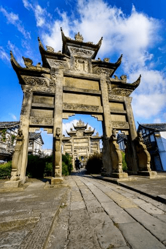 巴蜀古驿道,悠悠千年情。座落在这条石板路上的古牌坊,纵贯县城南北, 几百年来,它迎接了多少策马飞奔的朝廷官员,也哺育了多少衣衫褴褛的黎民百 姓。仔细品味这一座座牌坊上的铭文及对联,就像在读一段又一段鲜为人知的历 史,在观看一出出无声的历史剧,在联想一个个凄婉悲壮的故事,在感受我国传 统“牌坊文化”的魅力。