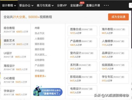 学习摄影及后期技巧笔者使用的是“虎课网”这个网站,网站上有专业学习摄影的栏目,可以在这里找到专业的摄影教程,从基础的相机使用,布光方式等,到复杂的商业产品摄影,都有视频可以学习,直接明了。