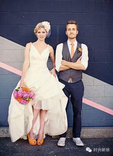 试试与新娘手捧花、鞋子等细节处的色彩搭配,是新人造型的高级玩法。