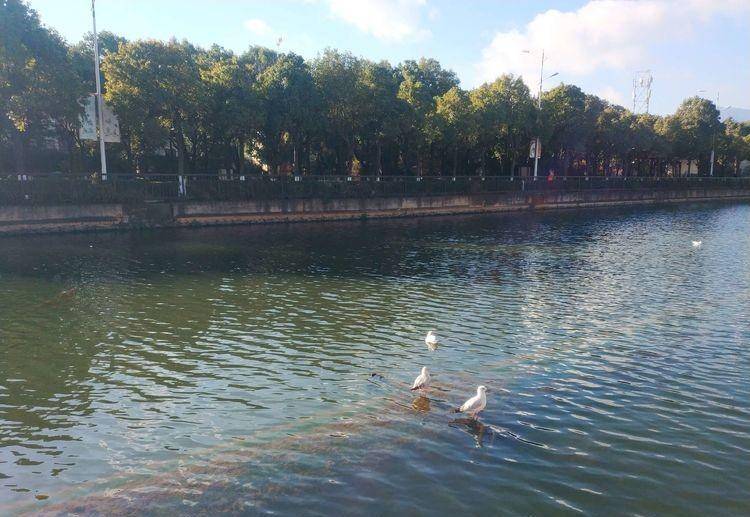 最吸引眼球的是船房河的水量充裕、水流清澈,河中有不少红嘴鸥独立水中、悠然自得。除了我们,河岸两边的人不多,三三俩俩、行走两岸。