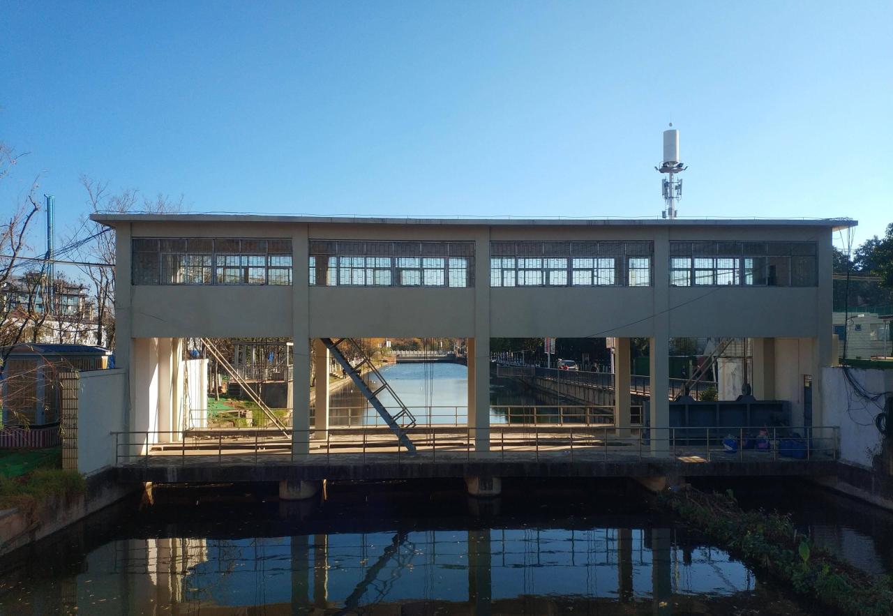 距离滇池边不远的河道上,有一道水闸,用于对河道水位等方面的控制之用。