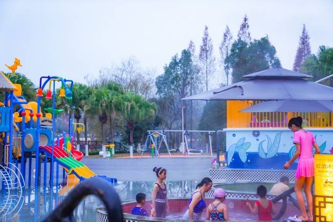温泉采自纯天然地下水系井富含有大量硒矿物质,对于人体有显著的防癌抑制肿瘤的保健作用,除硒以外还含有溴、碘、偏磷酸等多种微量元素及矿物质。其中室内外设有80余个别具特色和不同功效的多功能自动水力按摩池、药浴池、温蒸全身营养浴房以及在山林中罕有的竹、石林温泉,26间豪华SPA理疗房,东南亚风情的白沙自助餐厅,让此次的温泉之旅充分感受到与大自然的亲密接触和尊贵服务。