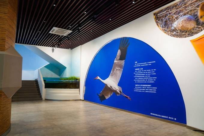 不仅如此,吴城保护管理站内还建设了江西首个最全面展示生态环境的鄱阳湖湿地和候鸟宣传教育中心,该中心通过文图展板、全息影像、白鹤标本等全方位向来访者展示并科普候鸟的迁徙情况及鄱阳湖湿地四季变换历程,让来访者充分了解鄱阳湖生态、历史、人文情况。