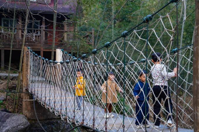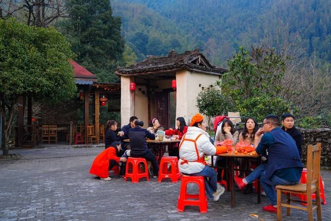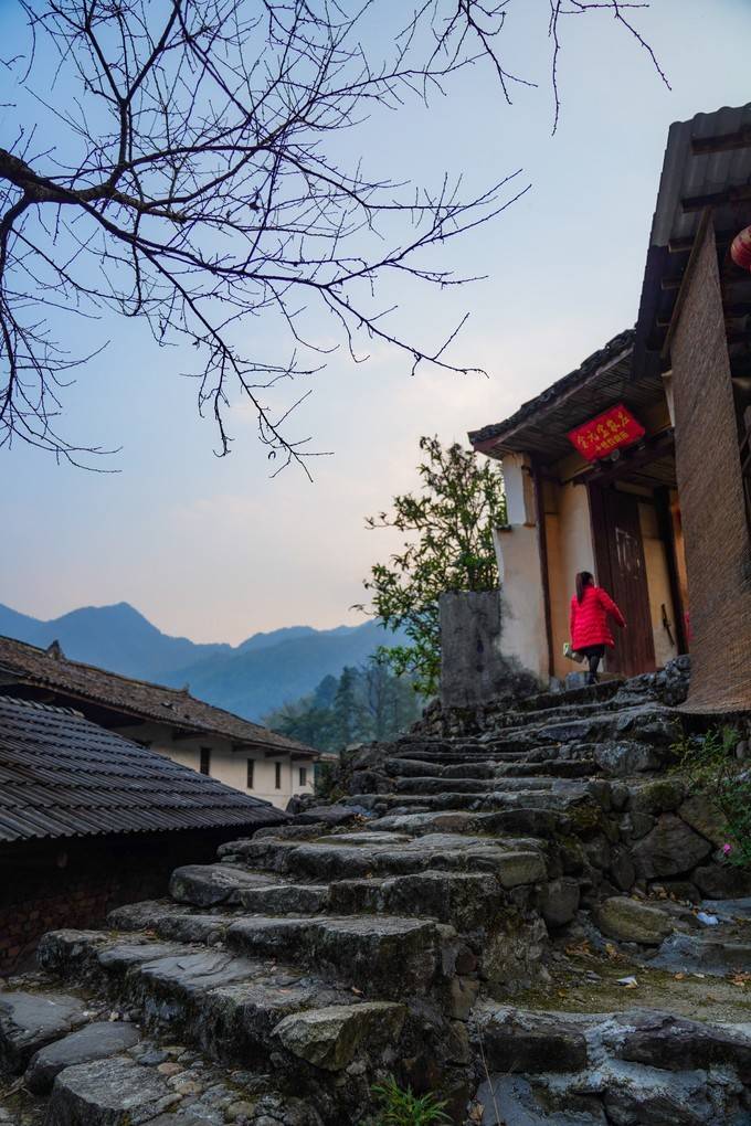 古村四面环山,葱茏茂密,溪水穿村而过。桥连两岸,孩子们在栈桥上开心的玩乐。村里的家禽小动物也不惧怕游人,鸡、、鸭、小猫、小狗,悠闲在村里的每个角落。