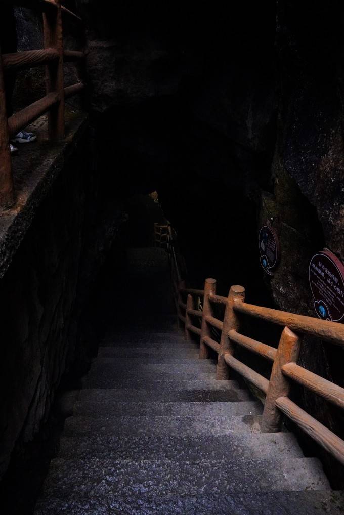 由于今天上山天气不太好,只选择了几个点位,青云栈道就是其中之一。青云栈道位于海拔约1500米的明月山山顶,全长约3100米,因其常年云雾缭绕,行走之上,有平步青云之感,故名青云栈道。它起于梦月山庄,穿星月洞而出,止于月亮湖,其中星月洞长150米,是一天然石洞,冬暖夏凉,水溪潺动。出星月洞,见山面水,豁然开朗。站在观景平台上,俯瞰群山,可感造化万千。