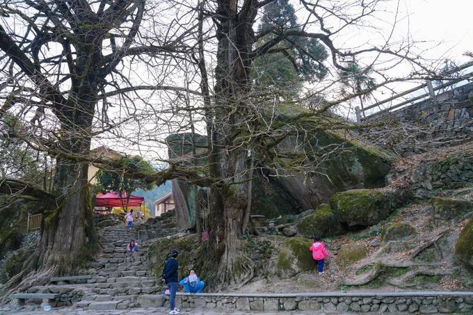 南惹村两株有着近千年历史的古银杏树。在村西口,几块天然的巨石组成一座形似山门的景观,厚重又古朴的石头小径穿过巨石向村里延伸。两株古老沧桑的银杏树挺立在路的两旁,相距大概近十米。
