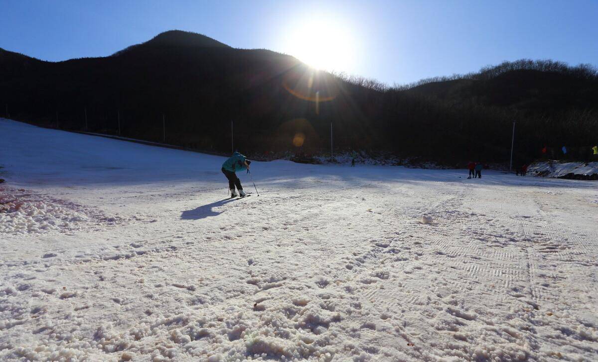嵩山滑雪场位于登封市嵩山太室山卢崖瀑布景区内,从郑州出发一个小时就可到达,景区内有一个标准滑道一个U型滑道,戏雪区近千平方米,从规模上说,属于小型滑雪场,夏天的时候还可以滑草。滑完雪,还可以去爬卢崖瀑布,锻炼身体、欣赏雪景,可谓一举两得。