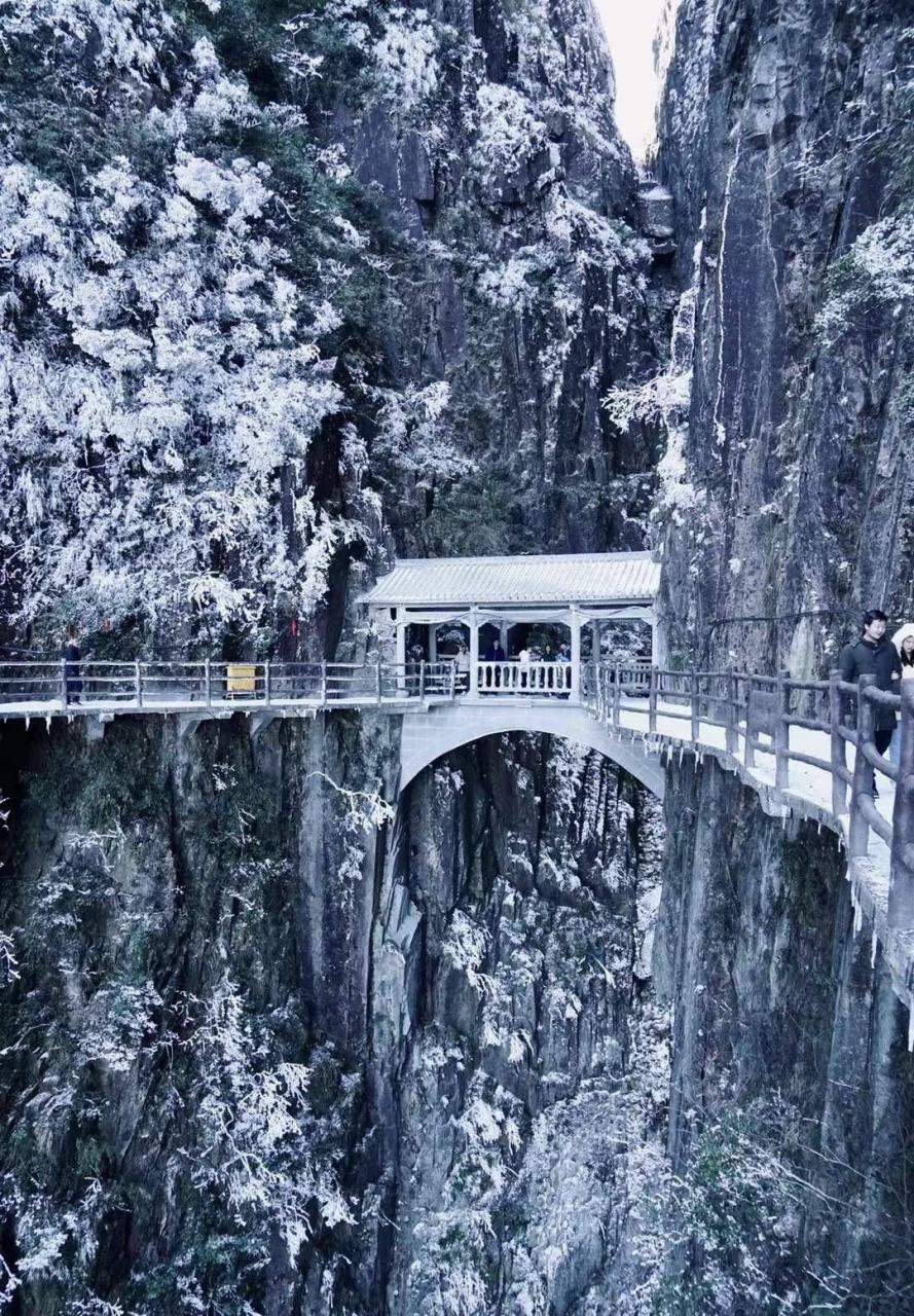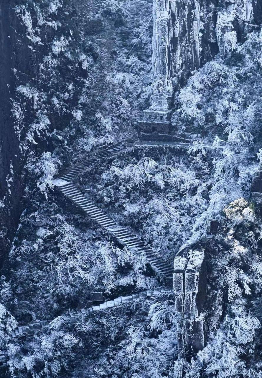 初次湖南郴州莽山,恰逢全国气温骤降,莽山山上银装素裹,山间台阶小道、亭台吊桥、满山树枝,全都铺上了一层白雪,银装素裹的世界就这么出现在眼前,令人惊艳。