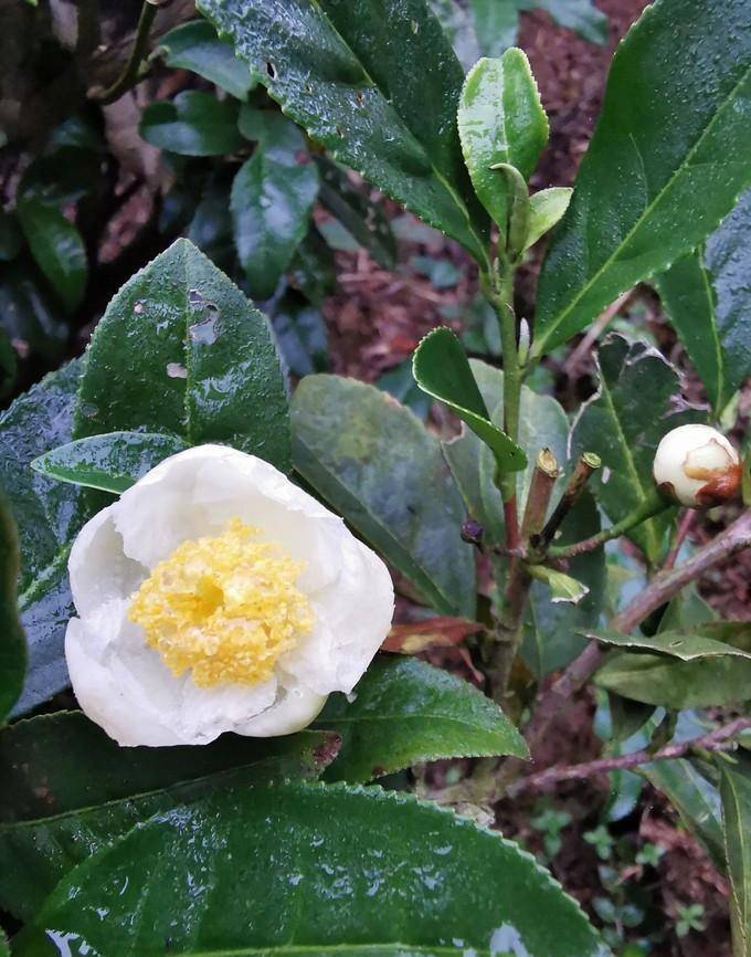 偶遇一个山茶花花田,没想到这个时候还有盛开的的山茶花,花瓣上结了点冰挂,晶莹剔透,十分美丽。