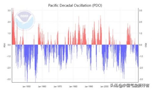 根据近期的部分研究认为,1998前后开始的PDO负位相期于2014年中断并转为正值,这一插曲持续到了2018年夏季;这一时期表现出了内部变率主导的独立发展的特征(期间多次刷新同期最高),甚至可能通过副热带-热带间作用影响调制了随后多次ENSO事件的演变。而在2018年到今年初,虽然PDO指数重新转为负值,但和先前典型PDO负位相年代海温已有显著区别,表现为不再是北太平洋暖流区(北美西海岸)偏暖(冷),而是一致偏暖;只是由于北太平洋偏暖更严重,根据定义计算得来的PDO指数仍然属于负值。