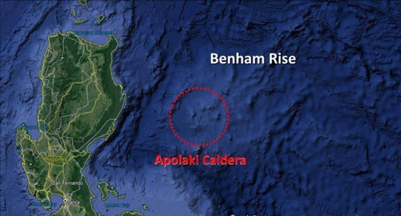 在去年,海洋地球物理学家发表了一篇论文指出在菲律宾海底发现了一个超级巨大的火山口遗迹,它位于菲律宾吕宋岛以东海域,距离中国台湾屏东县东南约750千米左右,这个火山口的直径有150多千米,重点提一下,新发现的菲律宾海的火山口,光直径就比美国怀俄明州黄石火山口直径大2倍,而整体火山口的面积要比“黄石火山口”大六倍,被命名为:Apolaki。