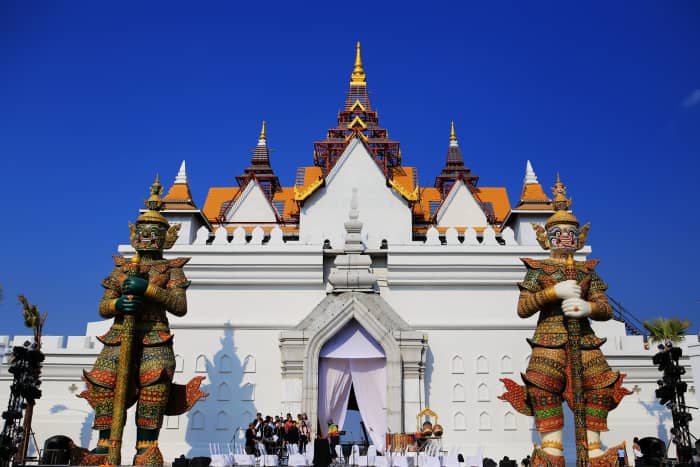 来了曼谷怎能不去大皇宫呢?从我们住的酒店步行到大皇宫,大约20分钟。由于大皇宫开放时间是08:30-15:30,我们特意为了避开人流早上8点半出发。从外面观望大皇宫建筑群,带有浓厚的泰国特色,金碧辉煌,