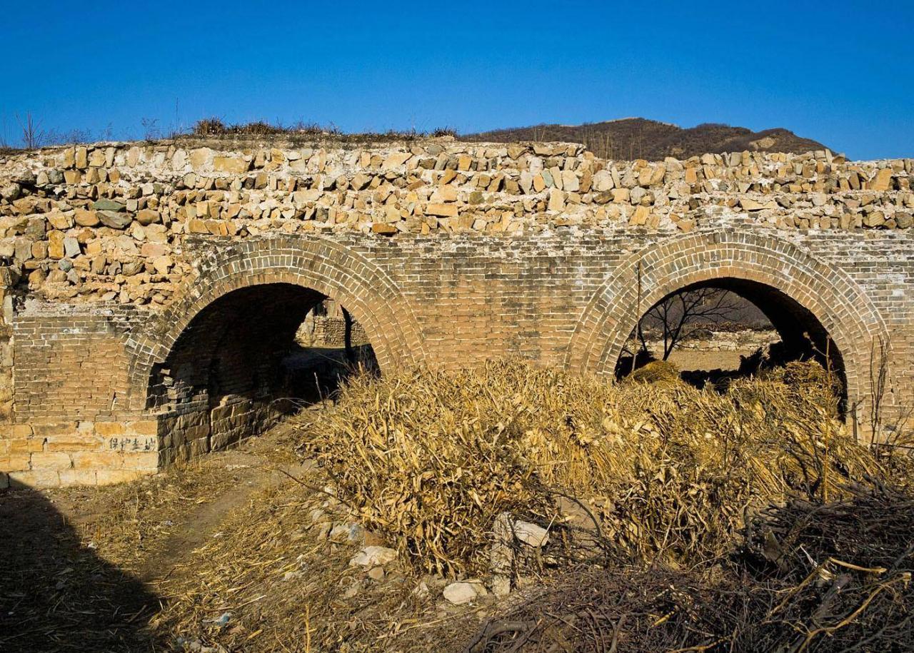 村子就像是个新村,只有城中一栋戴红五星的建筑看着有些年代。老乡说它建于60年代,过去是礼堂,如今已成了仓库。南城门没有找到,我只看见城西的双孔水关。这座水关明朝时被用作泄洪,如今只有外型还在,却成了荒草丛生的羊肠小道。