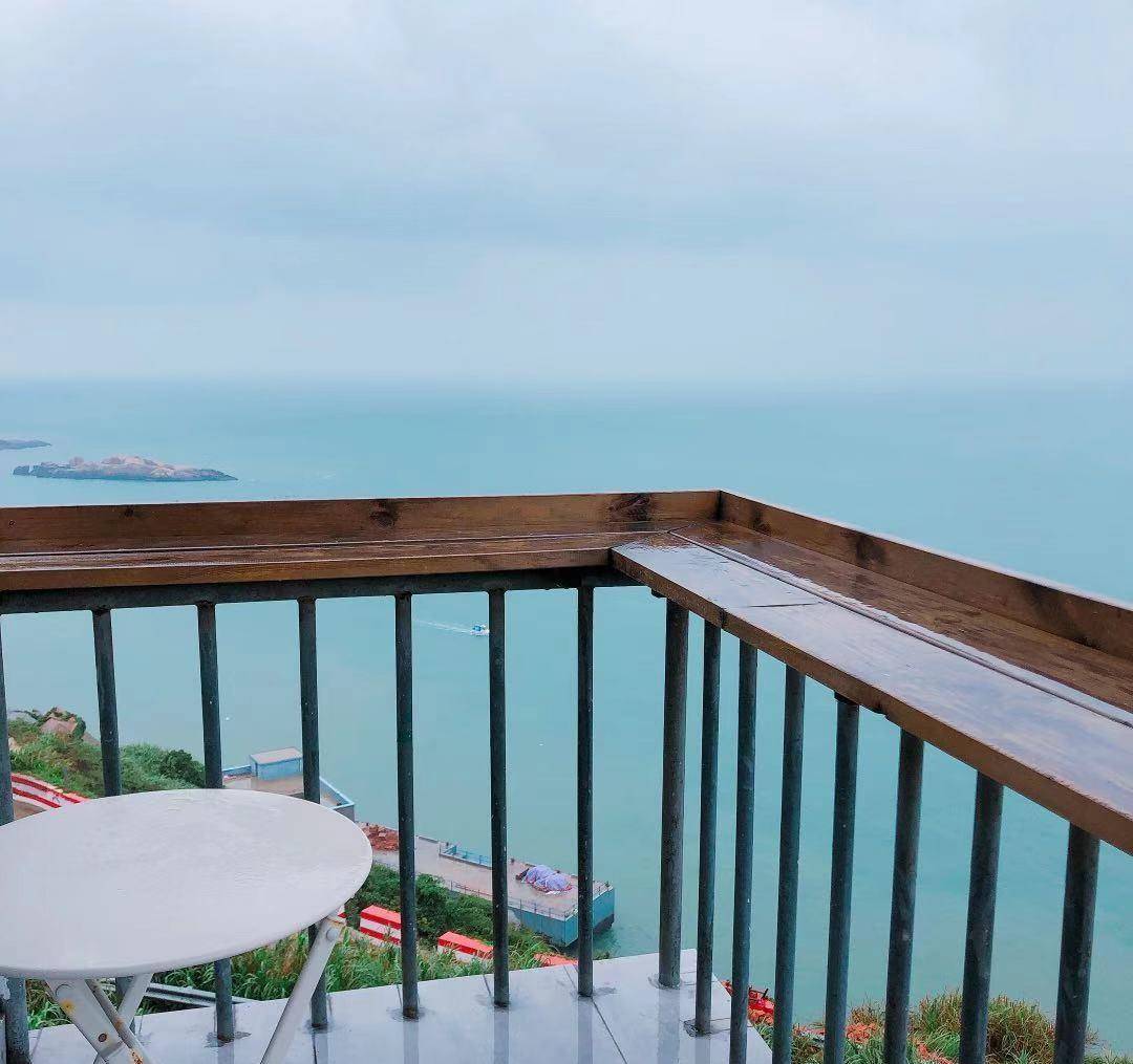 东极这几年游客非常多,随着旅游市场的火热,当地的旅游服务产业发展也非常迅速。岛上有很多民宿,这家靠海的民宿在阳台上搞了个很有创意的栏杆,既起到栏杆的作用又起到桌子的作用,坐在这简易桌栏杆旁,晒着太阳、喝着美酒、看着大海,那是多么的惬意。