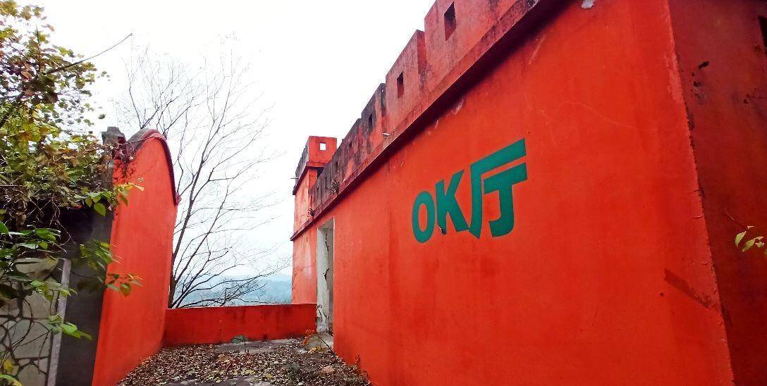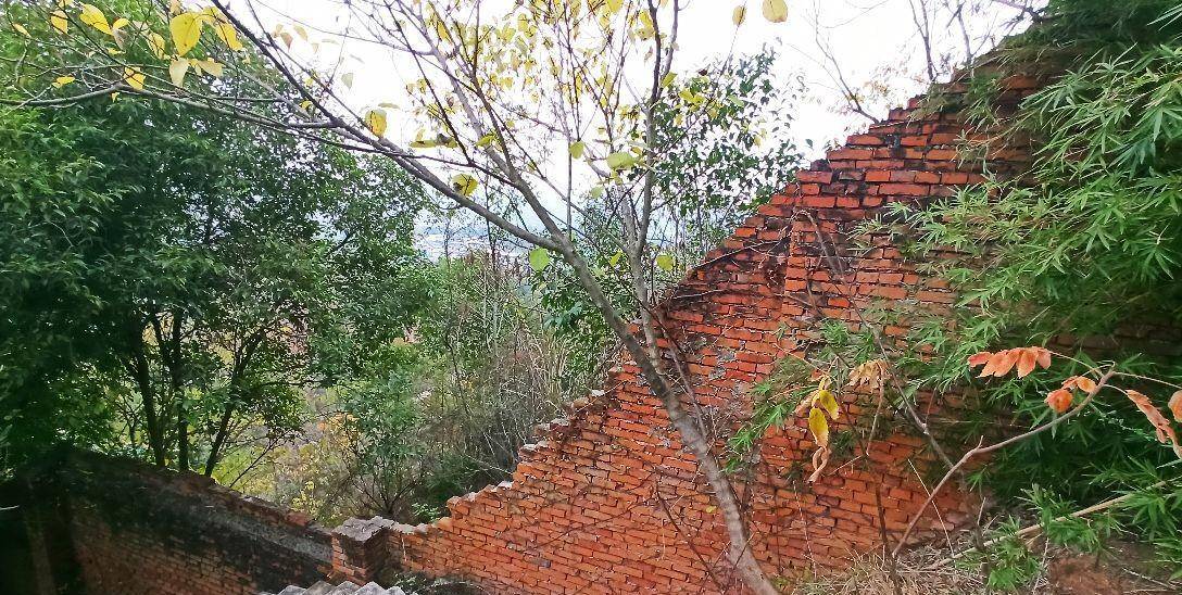 一路枯枝落叶覆盖着去往山顶的路,断裂的山墙有的已经倒塌,有的被杂草树木所掩盖,曾经的山顶围墙边因饲养有猴子、鸵鸟等动物,以及部分娱乐场所,吸引了不少人前去游玩。