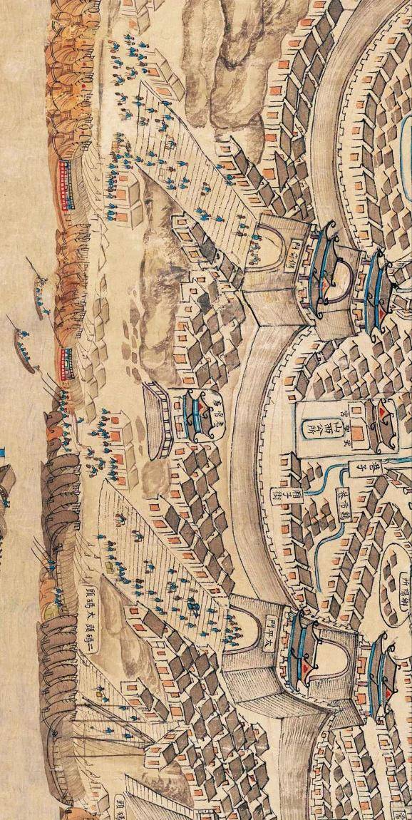 上图是储奇门和太平门的全景,很难得,还有城里城外的密密麻麻的民居。其他的大家仔细观察,非常有意思。