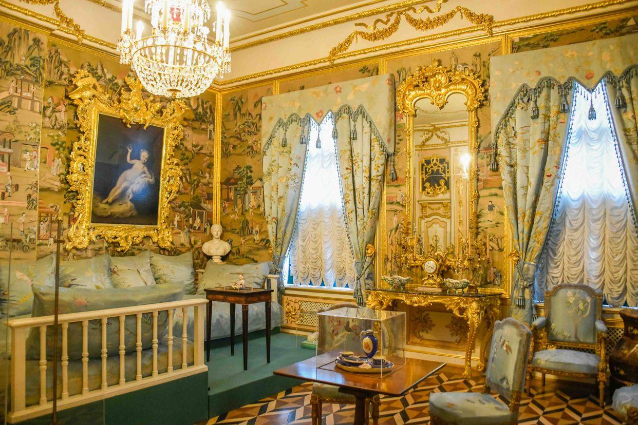 彼得大帝夏宫分为上花园和下花园,上花园与下花园所种的花草皆不相同,大宫殿在上花园,内外装饰极其华丽,两旁都有镀金镶嵌在穹顶之上,宫内有富丽堂皇的庆典厅堂,礼宴厅堂和皇家宫室都十分巨大,大宫殿前有大瀑布似的喷泉群。37座金色雕像镇守在宫殿的每一个角落,29座潜浮雕和150个小雕像点缀着宫殿,64个喷泉及2座梯形瀑布不规则排列着,规模庞大,向世人宣示着皇家的气派,非常值得一览。宫内有锻造铁栅栏隔开花园,造型独具特色,只要你去,彼得大帝夏宫一定会让你为之惊叹的。