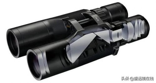 从上图你基本可以看出尼康WX的镜片布局,如果仔细看的话,你可能觉得物镜不是只有两片吗?实际上第一片可能是双合胶的,再往后你可以看到阿贝棱镜,阿贝棱镜是全反射棱镜,这样的配置可以保证画面亮度,反差(对比)足够好。