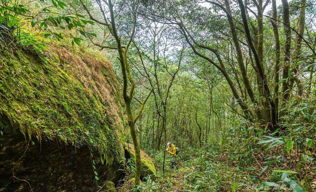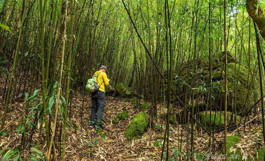 小路越来越不清晰,走着走着就没了路,迎接我们的是密密匝匝的竹林,非常难走。几经周折,我们还是可以找到正确线路。