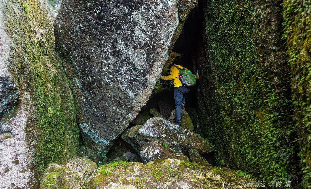 山穷水复疑无路,柳暗花明又一村。走着走着,迎面而来的花岗岩巨石,总会无情地挡住我们的去路。仔细查看,原来要从石块之间形成的石洞穿过去才能继续前行。