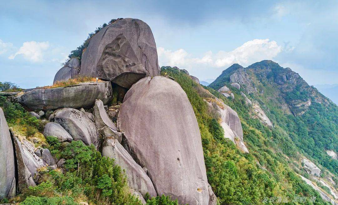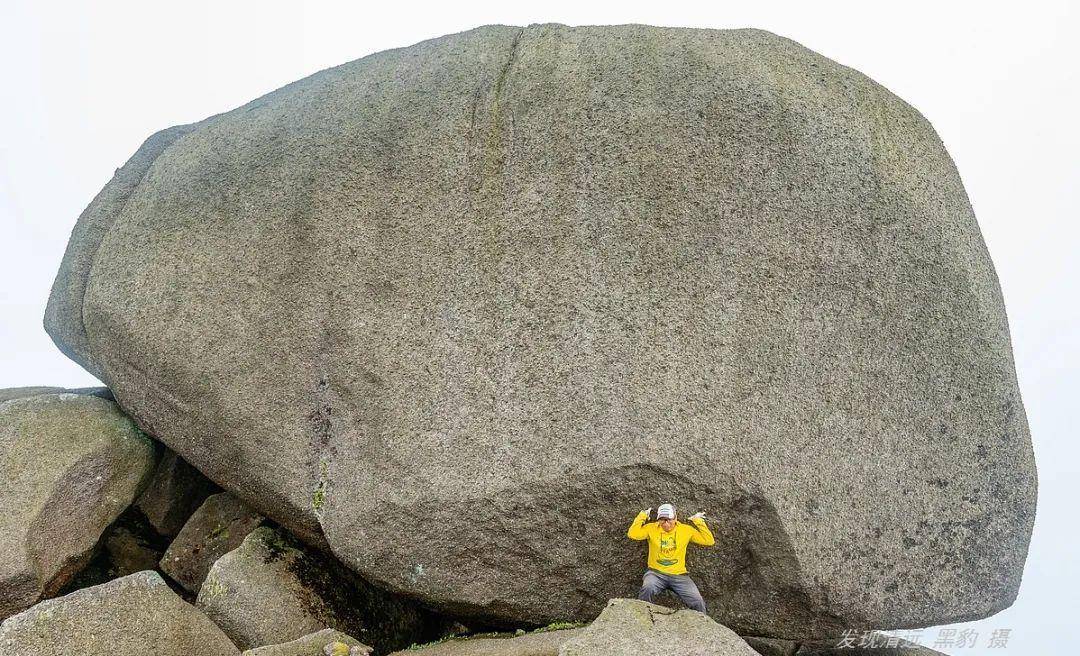 如果说通过照片不能说明这些巨石的体型庞大,那么通过下面三张有人物参照的图片,就能充分感受到这些巨石的体量了,而这几块巨石,还只是山脊上比较小的。