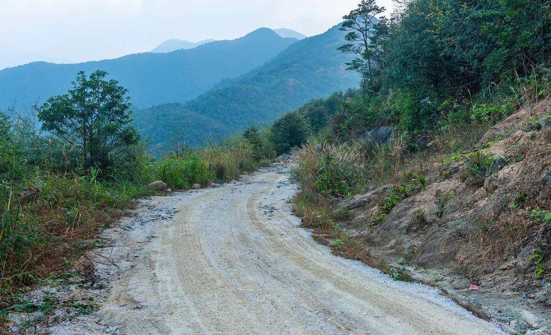 另一条是从S260省道广宁与阳山交界处的垭口出发,沿着采石场开挖的砂土公路直达采石场,路程也是10公里左右。这条砂土路比较宽,路面较好,可以通行小汽车。但是路面尘土比较厚,如果有运石车路过的话,会扬起漫天灰尘。