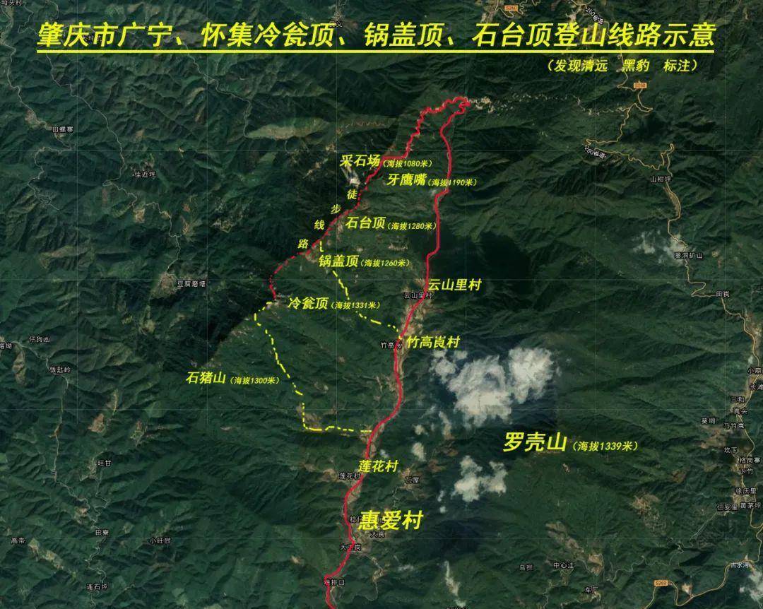 冷瓮顶,海拔1331米,莽莽罗壳山脉之中的一座山峰,位于肇庆市广宁县与怀集县交界处。冷瓮顶与罗壳山(海拔1339米)之间的谷地,是广宁县赤坑镇惠爱村委会。