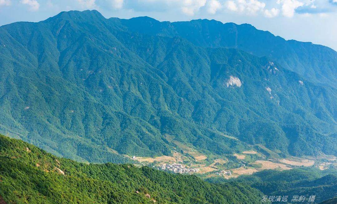 行走在山脊线上视野特别开阔。东南方向巍峨耸立的大山是罗壳山,海拔1339米。罗壳山与冷瓮顶之间的谷地散落着好几个村庄,比较知名的有云山里村、莲花村、坳背村和竹高崀村。