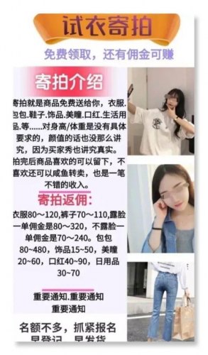 近期,一种新型诈骗浮出水面。有人在社交平台发布兼职“试衣员”广告,称只需寄拍几张买家秀,就可以轻松赚钱,时间自由月入过万,吸引了不少兼职者加入。
