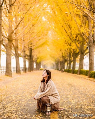 在室外拍摄,不要像上图一样,摆出蹲着的姿势,因为这种姿势,很不雅观,同时让人看起来,显得又矮又挫。左右两侧都是高大的树木,如果像下图一样,站在路中间,在确保安全,没有车经过的情况下,可以让人显得更加挺拔、苗条,这样的姿势,值得你借鉴。