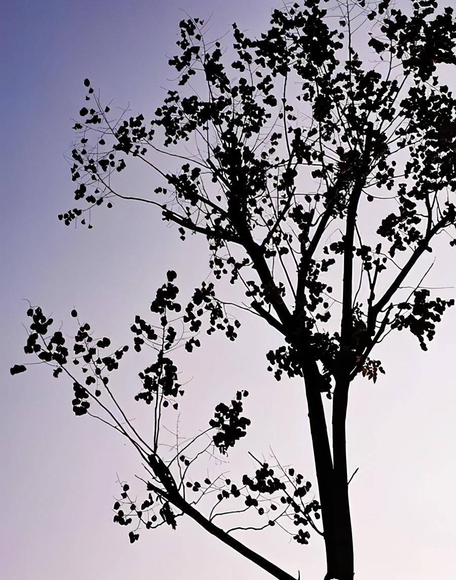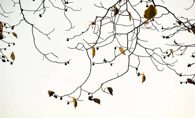 叶落后的小树。