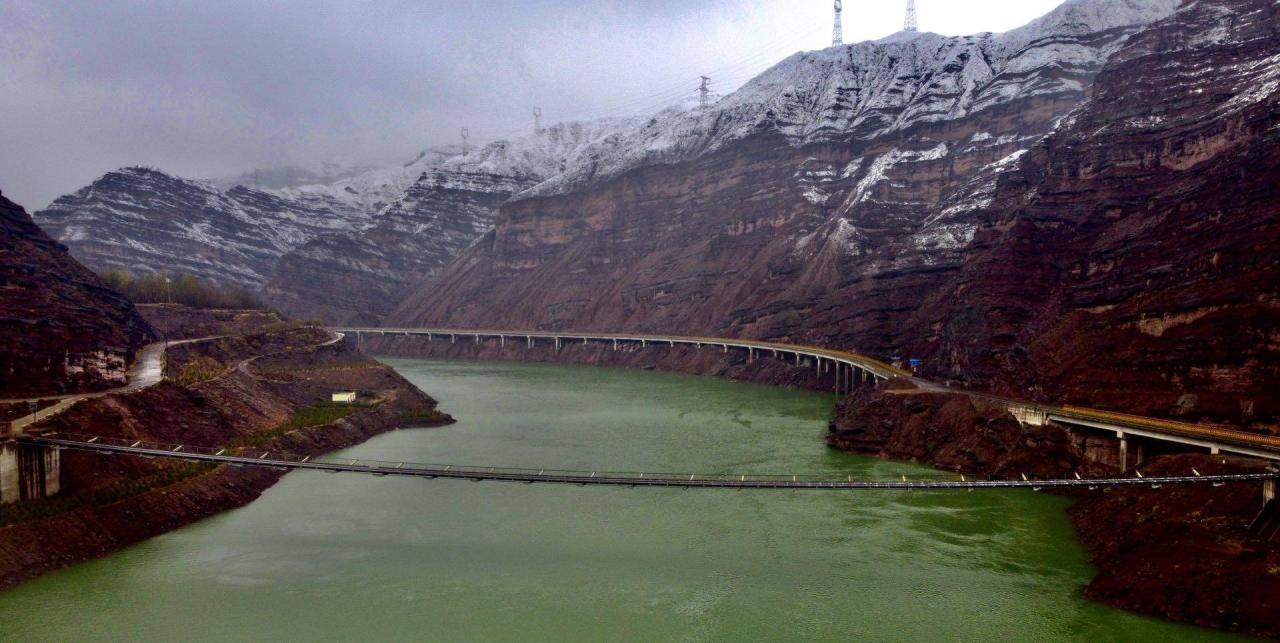 在积石峡中藏着的不仅有美丽的景色,还有一座黄河吊桥,横跨在悬崖峭壁间,看起来既危险又神秘。