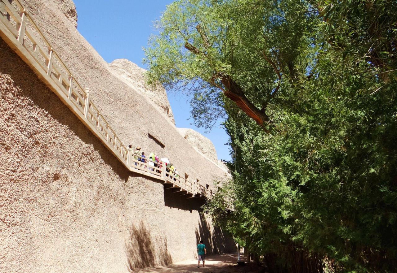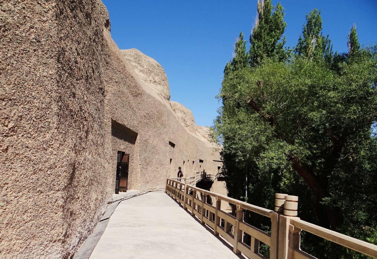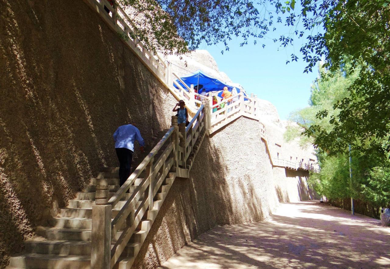 西千佛洞,在敦煌市城西南35公里处的党河河谷北崖,因地处莫高窟之西而得名,与莫高窟仅隔一道鸣沙山。我们是在从玉门关返回敦煌时顺路游览,途中景区标识非常明显。原本计划行程中没有这个景点,属于临时动议,这就是自驾游最大的优势。事后证明这个意外之喜,乃天意眷顾,锦上添花。