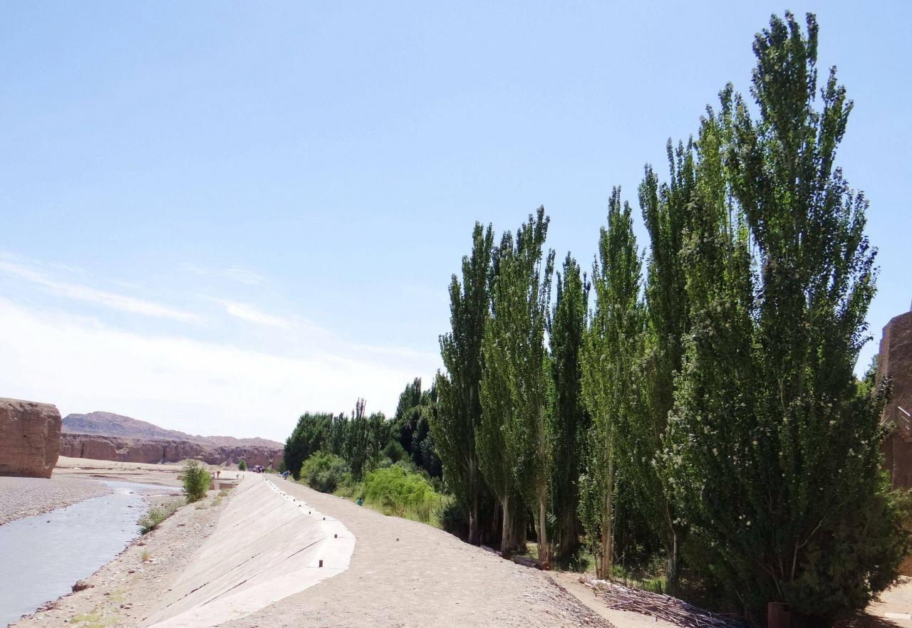 走出西千佛洞,驻足于白杨树下,党河旁边,遥望对岸无际的戈壁荒漠,感叹一千年来,昔日繁荣兴旺的丝绸古道是如何日渐荒凉,所幸还遗留下这些华丽珍稀的宝贵财富,传承中华文明振兴丝绸之路任重道远。