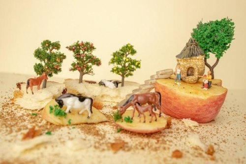 道具是一方面,这种微距摄影最重要的还是创意,创意就要精心的构思。这方面其实并没有太多要分享的,因为每个人的想法、创意都会有非常大的差异。不过重要的是善于利用自己周围的生活用品和食物,来构建一个全新的生活场景。