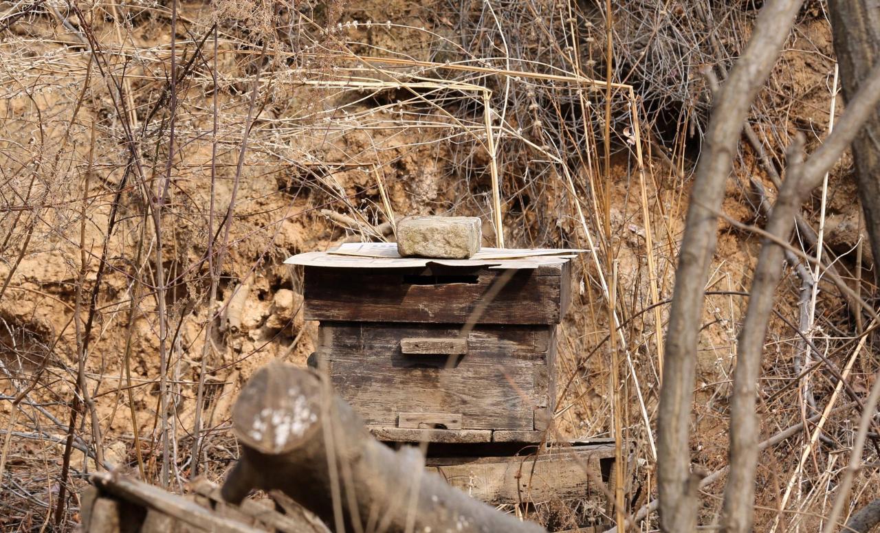 大山里蜜源充足,养土蜂也是山里人的标配,以前家家户户都养的有土蜂,大娘家外面也不例外地养着几箱土蜜蜂,只是听大娘说咱这中蜂干不过洋蜂,酿的蜜都让那些流动养蜂的洋蜂给偷完了,这大冬天的还得买来白糖喂它们,不然全部得饿死。明年再试一年,不行就放弃不养了。