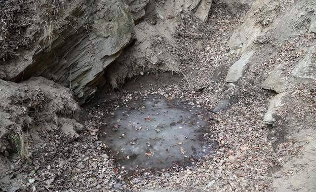 平时老两口饮水的山泉水被冻住了