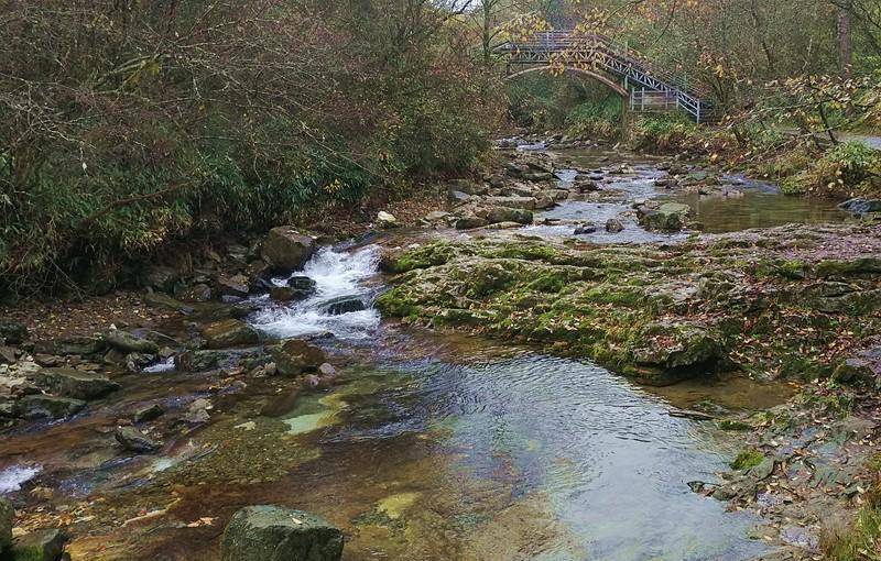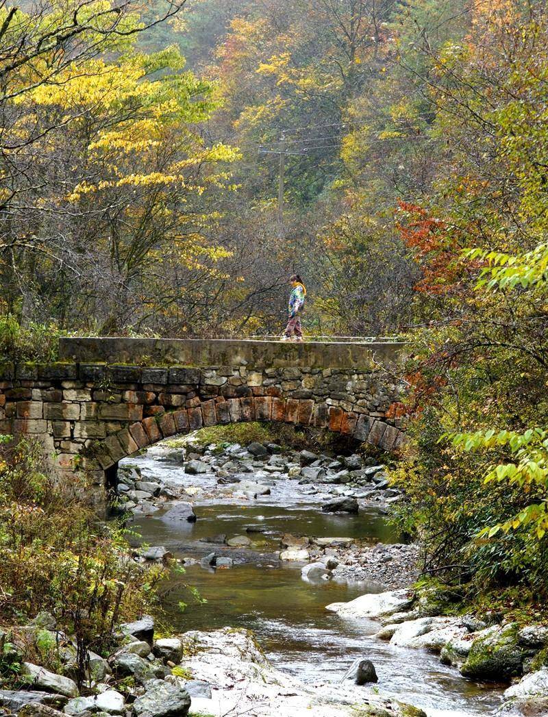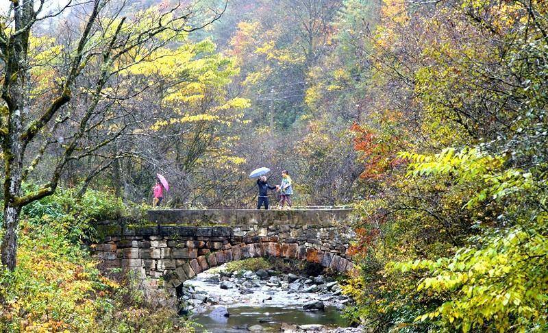 黑熊沟是光雾山大坝景区的一部分,也是整个光雾山景区的精华所在,这里有很多值得欣赏的地方。我是从黑熊沟的一座石桥开始向下游游览的。沿着小溪渐渐而下。