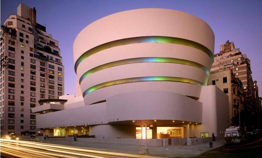 古根海姆博物馆,位于曼哈顿上东区,由著名建筑师弗兰克·劳埃德·赖特设计。这座弧形的建筑是20世纪建筑的一个里程碑。馆内收藏了许多印象派、后印象派、现代和当代的艺术作品。