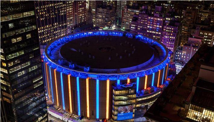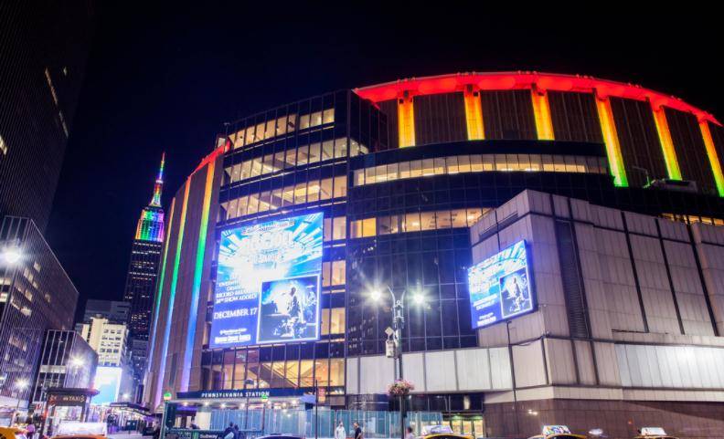 麦迪逊广场花园是一个室内体育馆,是冰上曲棍球队纽约游骑兵队以及职业篮球队纽约尼克斯队的主场。他们还举办其他各种体育赛事、马戏团、音乐会等。