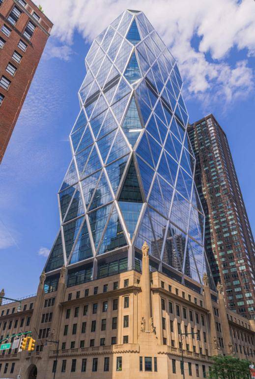 赫斯特大厦位于曼哈顿中城,是出版《Cosmopolitan》和《Esquire》等杂志的媒体集团——赫斯特通讯公司的所在地。大楼的基座可以追溯到1928年,上面新设计的三角形建筑由钢结构组成,它是纽约市第一座“绿色”高层办公楼。