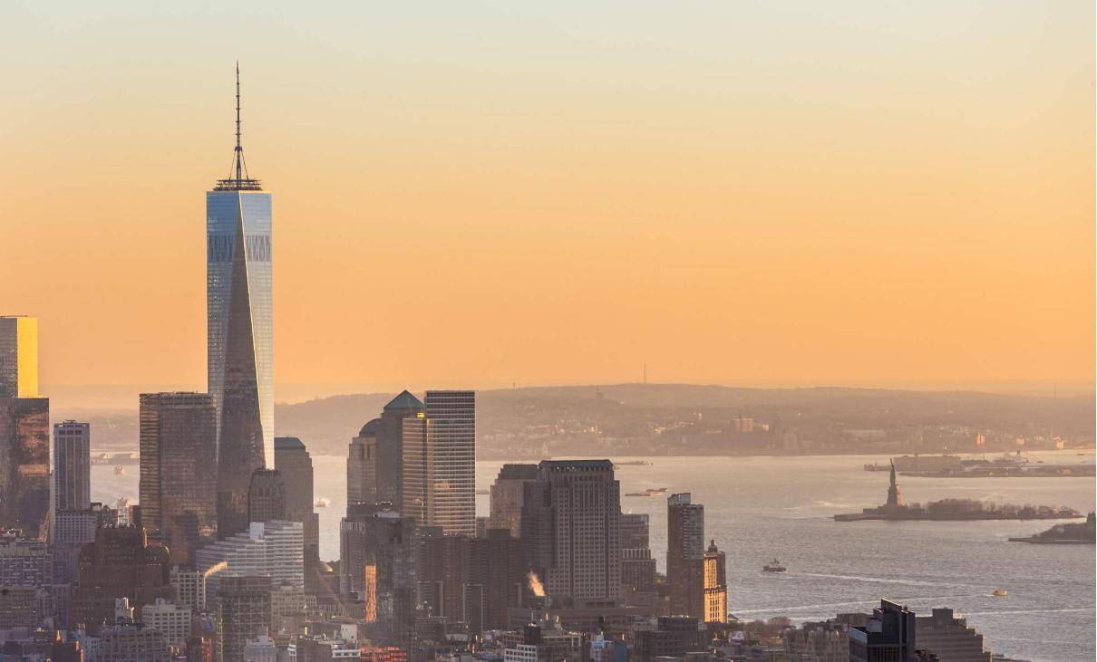 世贸中心一号楼是在原世贸中心一号的遗址上重建的,是世界第六高的建筑。100~102层有三层观景台,游客可以俯瞰曼哈顿迷人的景色。